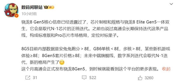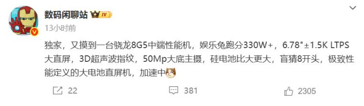 博主数码闲聊站刚爆料了一款骁龙8Gen 5处理器的新机,预计是真我neo 8,性能跑分达到330万左右,这款处理器在跑分方面超过骁龙8至尊版永华证券,实际体验应该差不多。